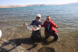 Indicator rigs are working great as well. You have to fish; you can’t just throw it out there and have a beer. You have to fish – mend, keep slack out, rod tip down, pay attention. Move your flies when it’s calm. Do this and double your chances of getting a take down. The Albino Wino in size 12 has been killing it. GT’s and Maholo nymphs as well.
